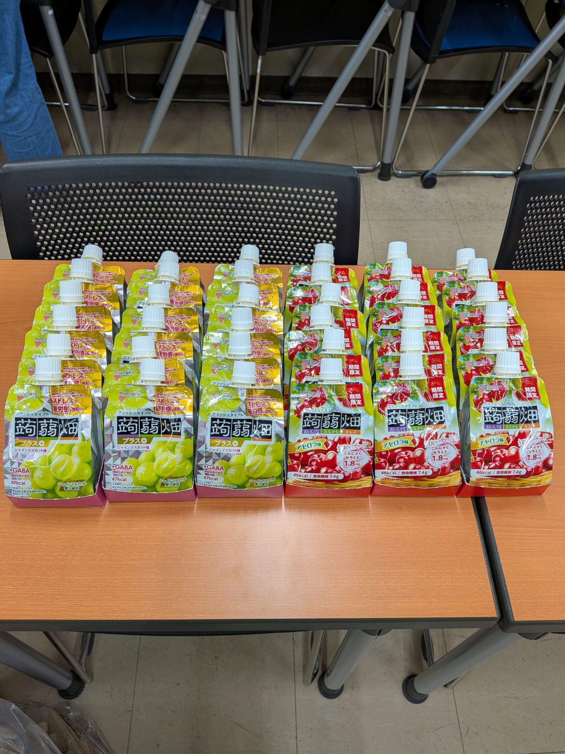 - 商品に対するコメント:いただいた協賛品は、クイズラリー企画の景品として使わせていただきました。11月で肌寒くなりかける時期とは言えど、まだまだ暑い日々が続く中で今回協賛でいただいたクラッシュタイプの蒟蒻畑は参加者の皆様に大好評の景品となりました。 片手でどのようなシチュエーションでもさっと食べることのできる景品として非常に人気で、特に教育大学の学園祭を目当てに来てくださっている子どもさんやその保護者の方に大人気でした。
