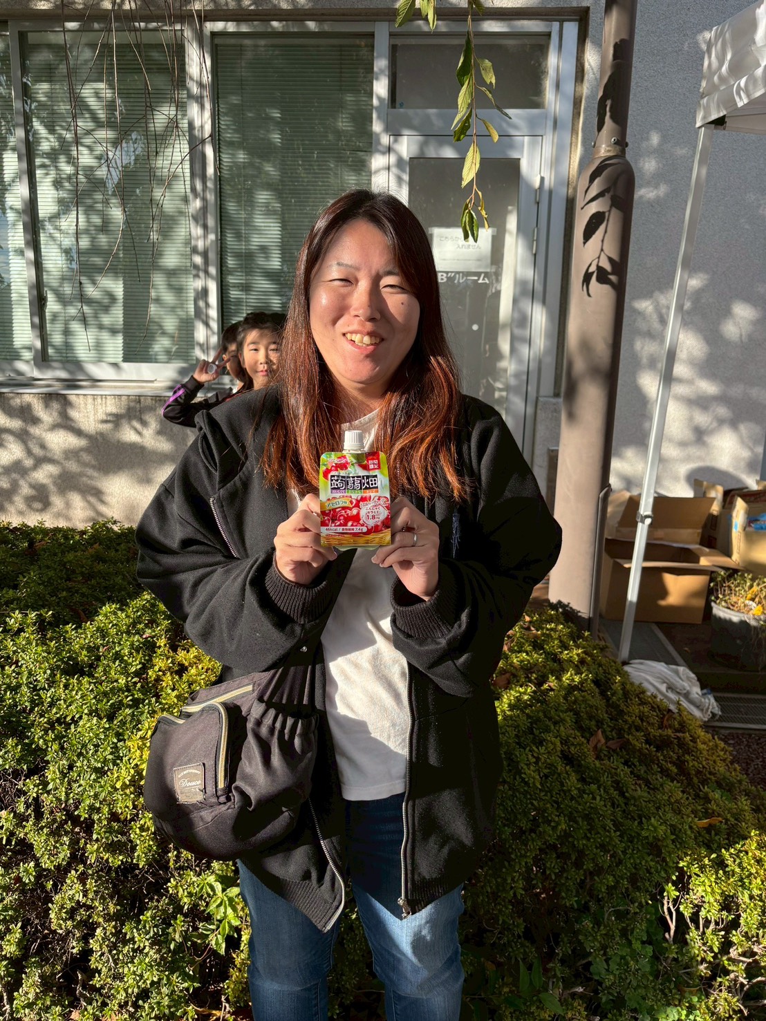 - 商品に対するコメント:今回提供いただきました「クラッシュタイプの蒟蒻畑」は、どの年代の来場者にも広く知られている商品であり、実際にお渡しした際にも多くの方親しみを示してくださり、大変好評でした。特に今回はシャインマスカット味というフレーバーに多くの方が喜ばれていました。また、家族連れの方から大学生の来場者まで、幅広い年代の方が笑顔で受け取ってくださり、世代を問わず喜んでいただくことができ、景品として非常に満足度の高いアイテムとなっていました。
