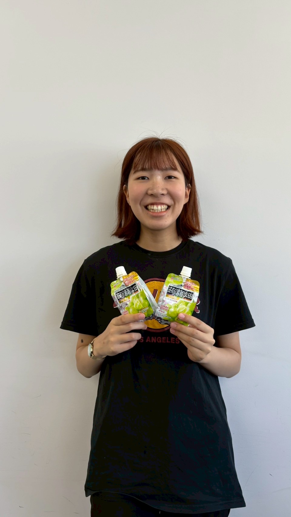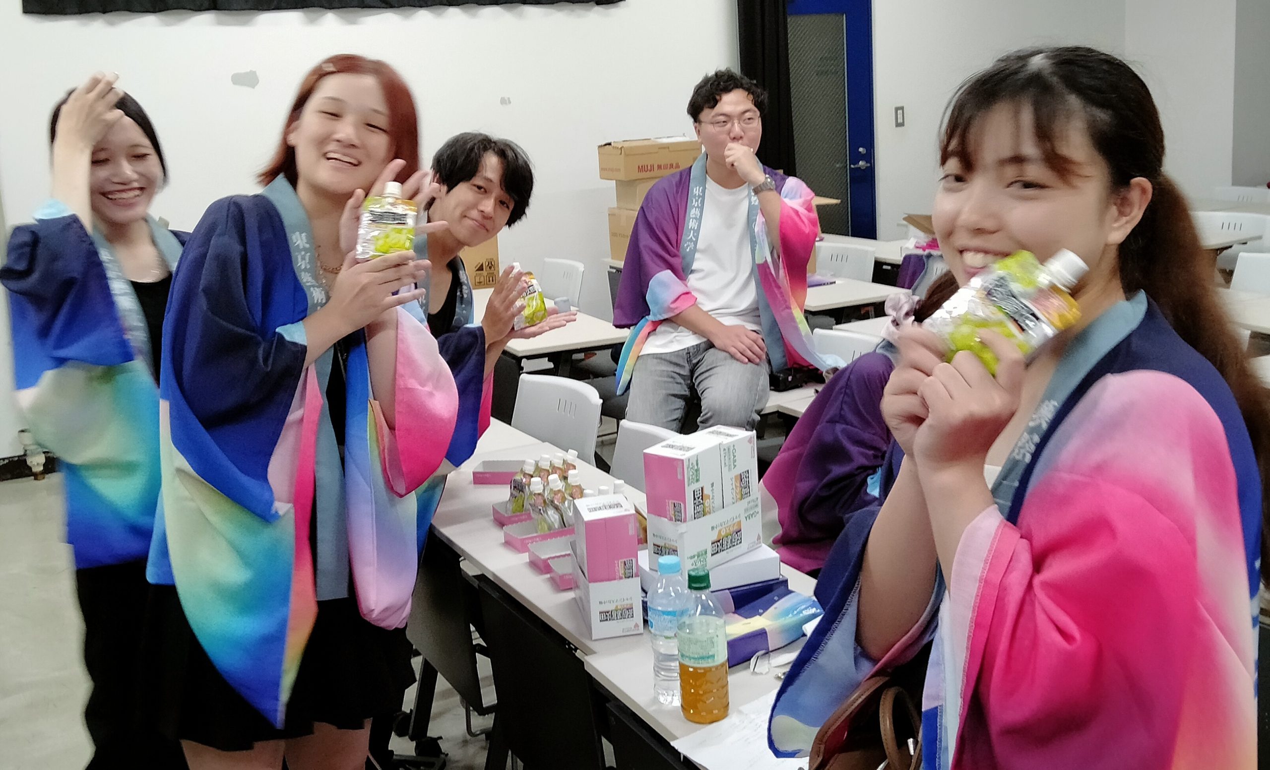 - 商品に対するコメント:協賛いただいた「クラッシュタイプの蒟蒻畑 プラス シャインマスカット味」は、既に多くの人に知られ、好まれている「クラッシュタイプの蒟蒻畑」のシリーズであり、 配布時に多くの方にご好評をいただきました。直接嬉しいといった旨の言葉をいただくことも多々ありました。本商品は老若男女問わず飲むことのできる商品というだけでなく、シャインマスカット味ということで、飲みやすく多くの方が好む味であり、大変ありがたかったです。また、「クラッシュタイプの蒟蒻畑 プラス」のシリーズはストレスや疲労感を緩和するGABAを配合しており、勉強や仕事に忙しい学生であったり保護者の方々に配布することが出来、より効果的な結果になったのではないかと感じております。