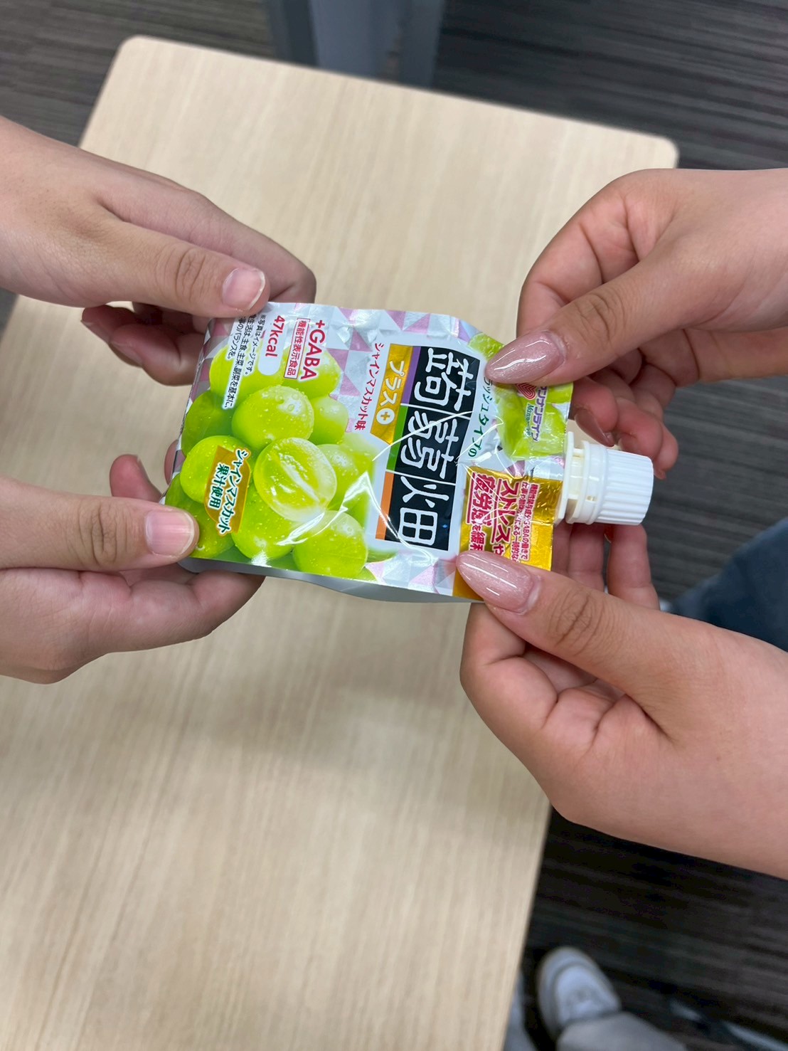 - 商品配布状況:文化祭期間中は、実行委員の作業部屋に設置し、1人1つずつ自由に取れるようにしました。休憩中に立ち寄る委員たちからは、「冷たくて美味しい」「疲れがとれる」と大好評で、多くの人が楽しみにしていました。作業の合間に手軽に食べられる、かつ満足感のあるパウチタイプだったため、疲れたときのエネルギーチャージにとてもピッタリでした。冷やして食べることでさらにおいしさが増し、暑い中の作業を支えてくれる心強い差し入れとなりました。