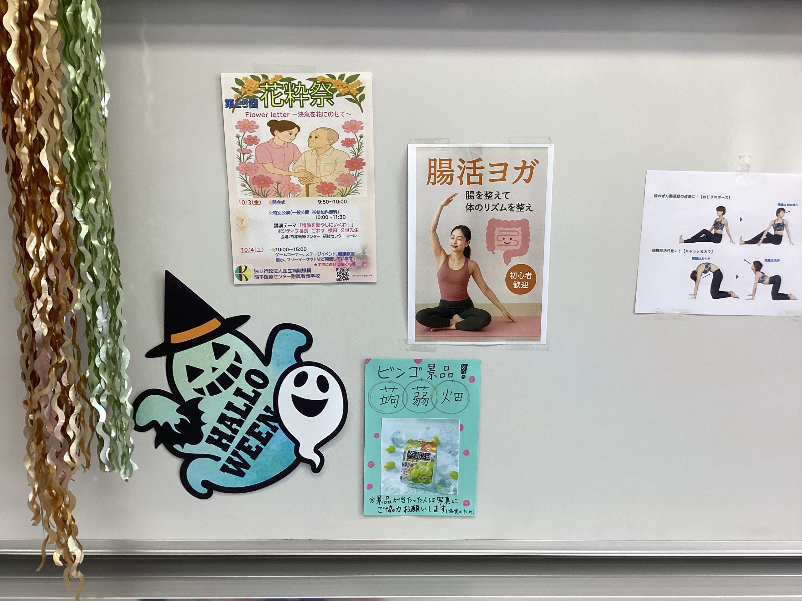 - 大学祭コメント:花粋祭は来年創立80周年を迎える熊本医療センター附属看護学校の伝統ある行事です。1日目は特別講演、2日目は校舎全体を使って地域の人々や在学生の家族や友人、母体病院や院内保育園の関係者等と交流します。ステージでは書道パフォーマンス、クイズ大会、よさこい、ソーラン節の踊りの披露、学校教員へのインタビュー、ビンゴ大会など行い、その他に生け花の展示、健康教室、模擬店、フリーマーケットなど小規模校ながら多くの企画が用意されています。アットホームで誰もがゆっくりと楽しめる学校祭となっています。