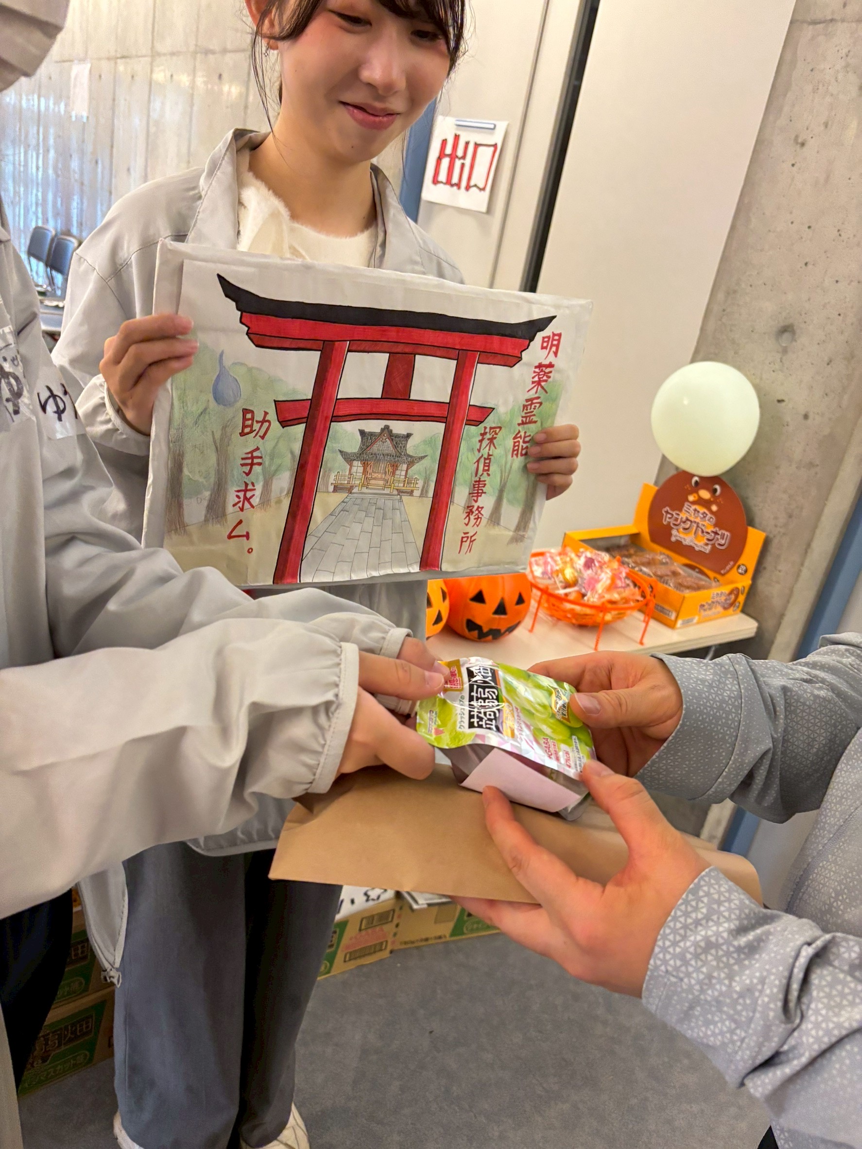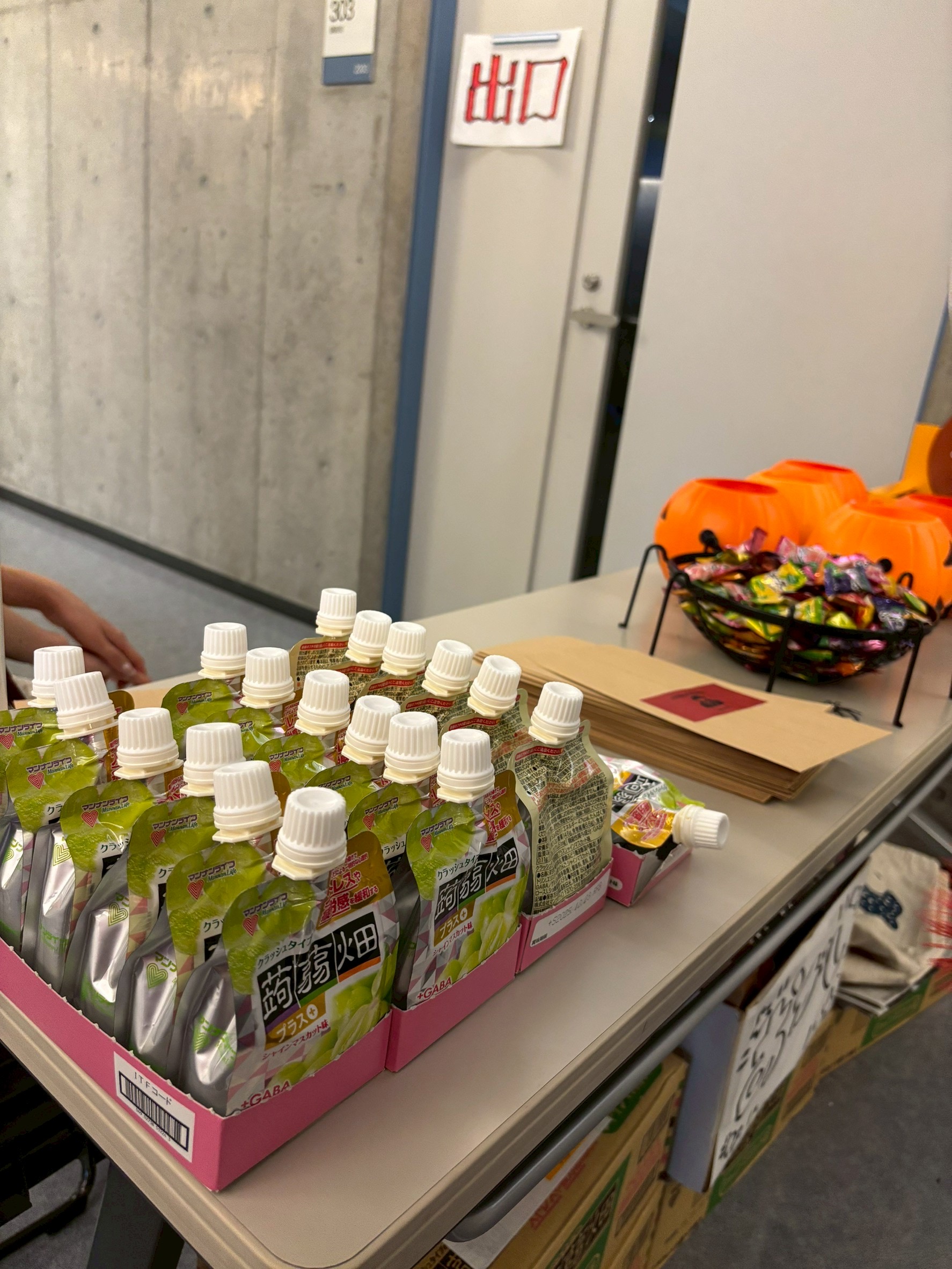 - 商品配布状況:提供製品「クラッシュタイプの蒟蒻畑」につきましては、当日の人気企画であるお化け屋敷の景品として大切に活用させていただきました。ゼリー飲料のように手軽に楽しめる製品は、ご来場者様から大変好評で、特に学生やご家族連れのお子様を中心に喜ばれる姿が多く見られました。商品を受け取った方々の安心した表情や嬉しそうな笑顔が印象的で、企画の満足度向上にも繋がったと感じております。提供いただいた商品はすべて無駄なく配布することができ、多くの来場者様にお楽しみいただけました。