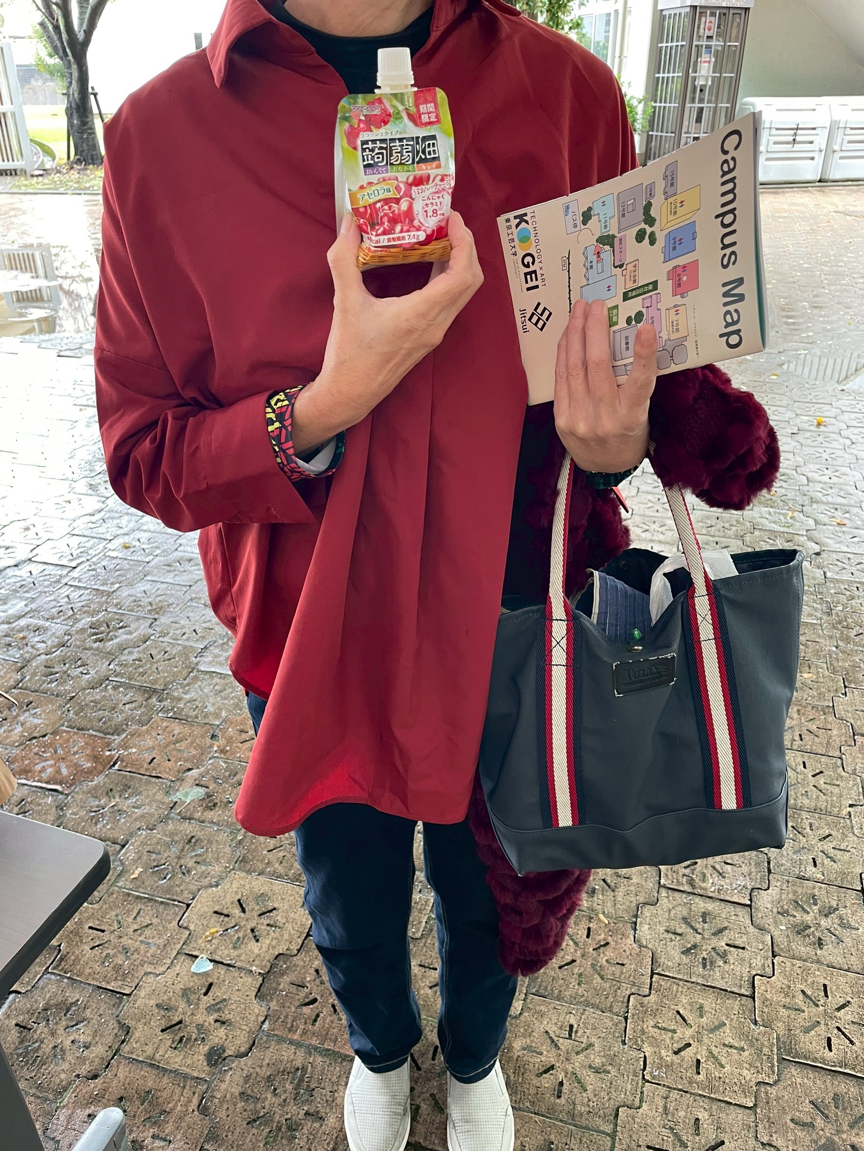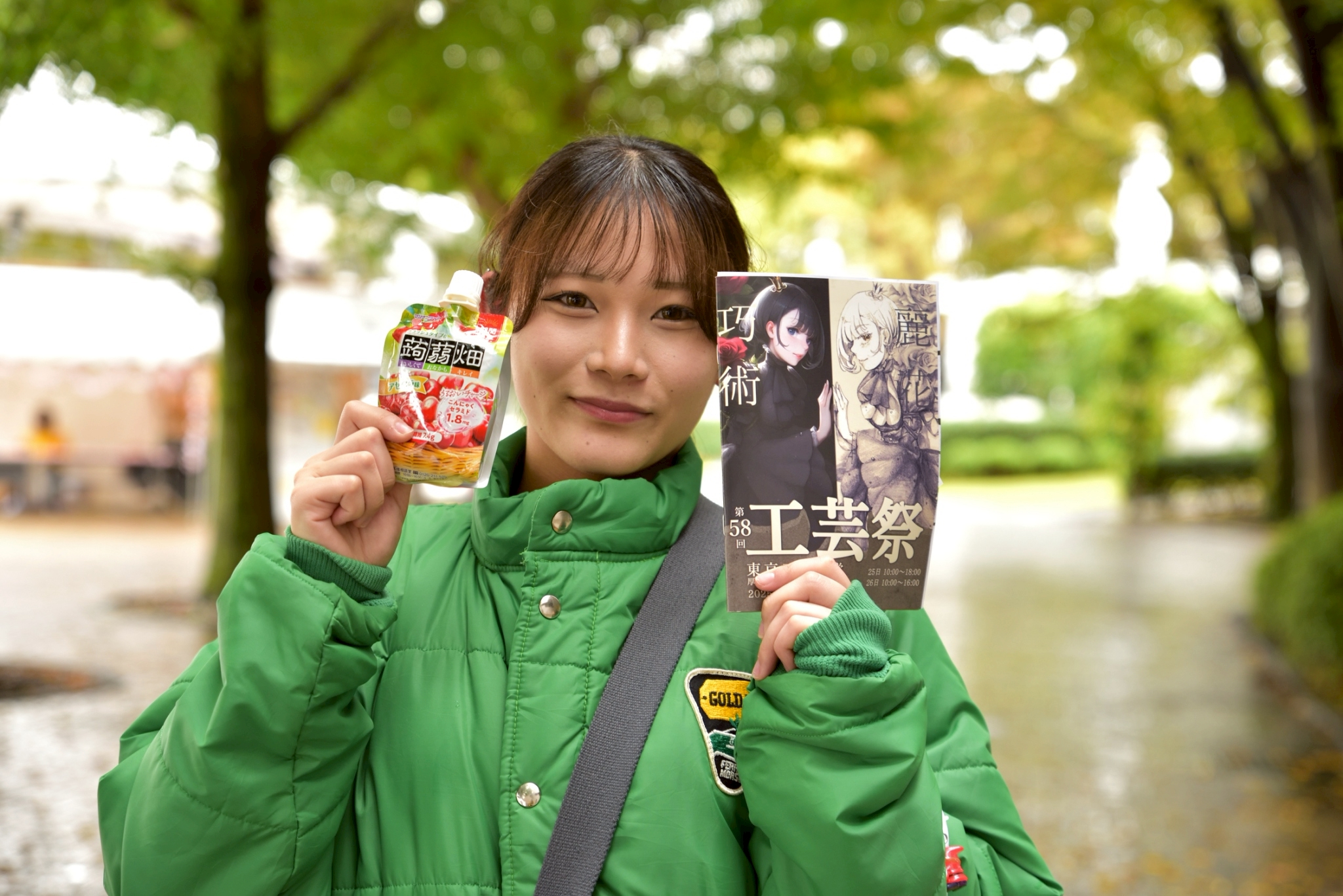 - 商品配布状況:10月25日(土)10:00~18:00、ならびに26日(日)10:00~16:00に、雨天の中開催された工芸祭において、二日間にわたり初日・二日目それぞれで配布を実施いたしました。 配布方法は、正門受付および裏門受付にて、来場者の皆様へ工芸祭パンフレットと併せて、ご協賛品である「蒟蒻畑」を学園祭実行委員が直接手渡しする形で行いました。 なお、初日・二日目ともに、開催時間の半分ほどが経過した時点で、すべての配布を完了いたしました。
