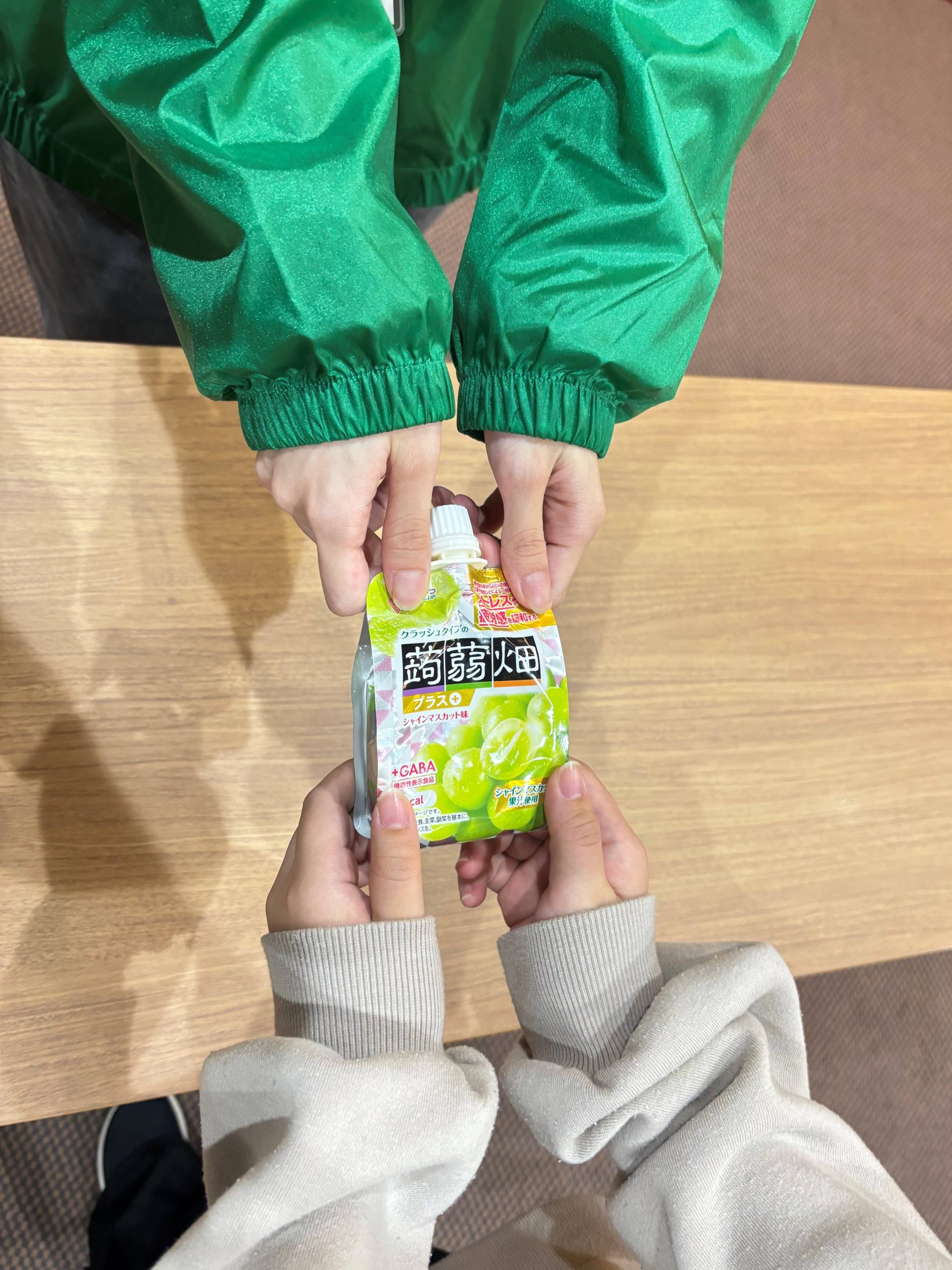 - 商品配布状況:今年度、「クラッシュタイプの蒟蒻畑プラス シャインマスカット味」は、縁日企画、トークショー企画に配布させていただきました。 来場者の方からは、「爽やかでおいしい」や、「イベントのあとにぴったりのリフレッシュ感」といった声が多く、子どもから大人まで幅広い層に喜んでいただくことができ ました。また、持ち運びやすいパウチタイプも好評で、「その場で食べても汚れる心配が少ない」や、「帰り道に食べたい」といった声も多く聞くことができました。 学園祭の雰囲気をさらに明るくしてくれる協賛品となり、参加者の満足度向上にもつながったと感じられました。