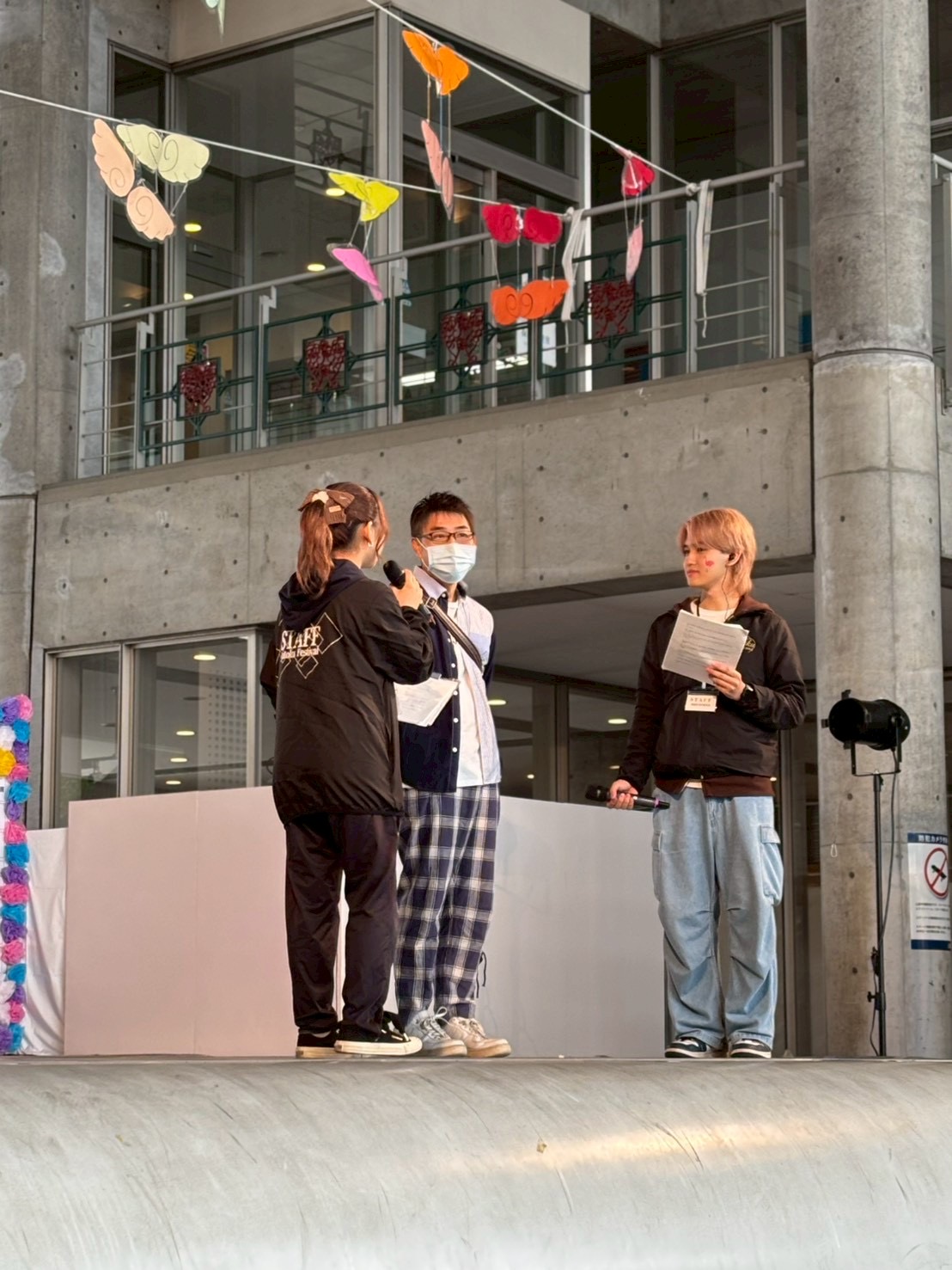 - 大学祭コメント:今年の学園祭のテーマである「彩羽-いろは-」には、1人ひとりが持ち合わせている豊かな個性(彩)が混じり合い、お互いを認めうことで一つの大きな翼(羽)になってほしいという願いが込められております。このテーマのもと、さまざまな団体が、それぞれの特徴を体現した個性あふれる学園祭となりました。本学の学生はもちろん、お越しくださったすべての方に楽しんでいただけるイベントとなりました。 天気が崩れる予報で心配しておりましたが、天気にも恵まれ、幅広くかつ多くの方に参加いただき、大盛況で終演することができましたことをご報告させていただきます。