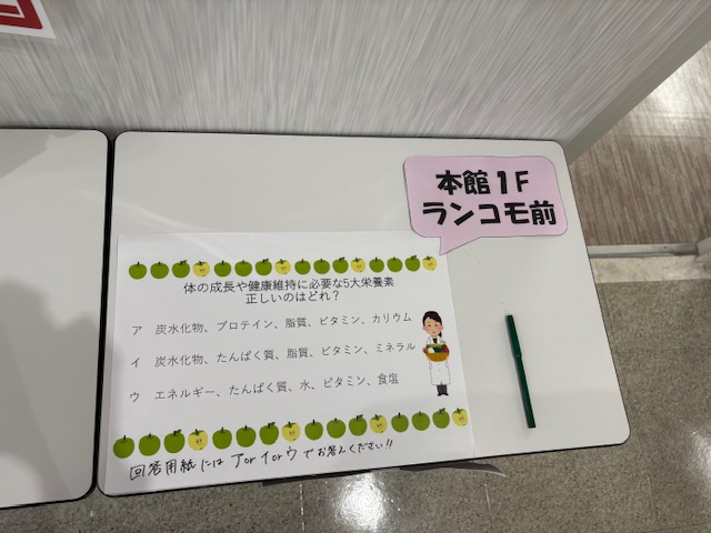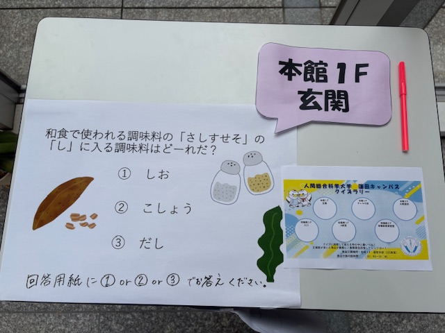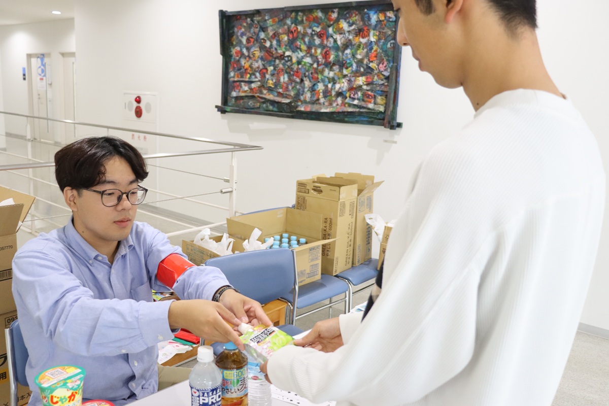 - 商品配布状況:学園祭来場者のみなさまに、受付にてクイズラリー回答用紙を配布いたしました。構内6箇所に設置されたクイズに挑戦していただき、正解者に対してのクイズラリー景品の一つとして、協賛品を配布させていただきました。