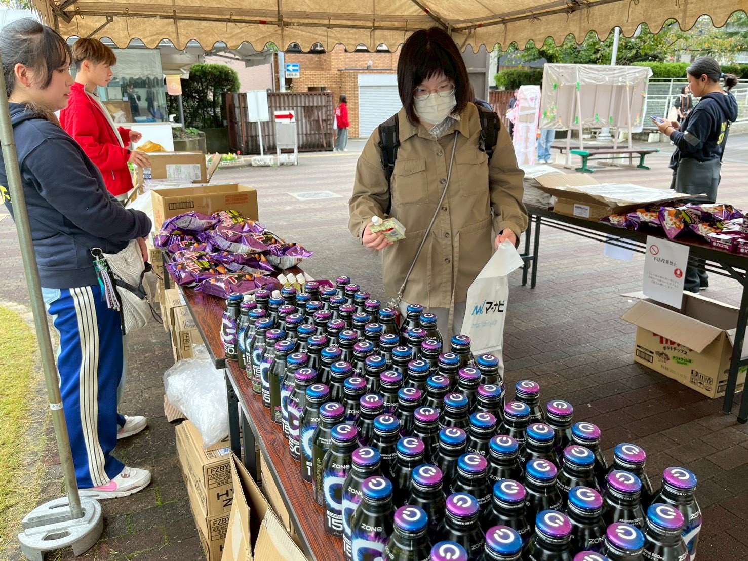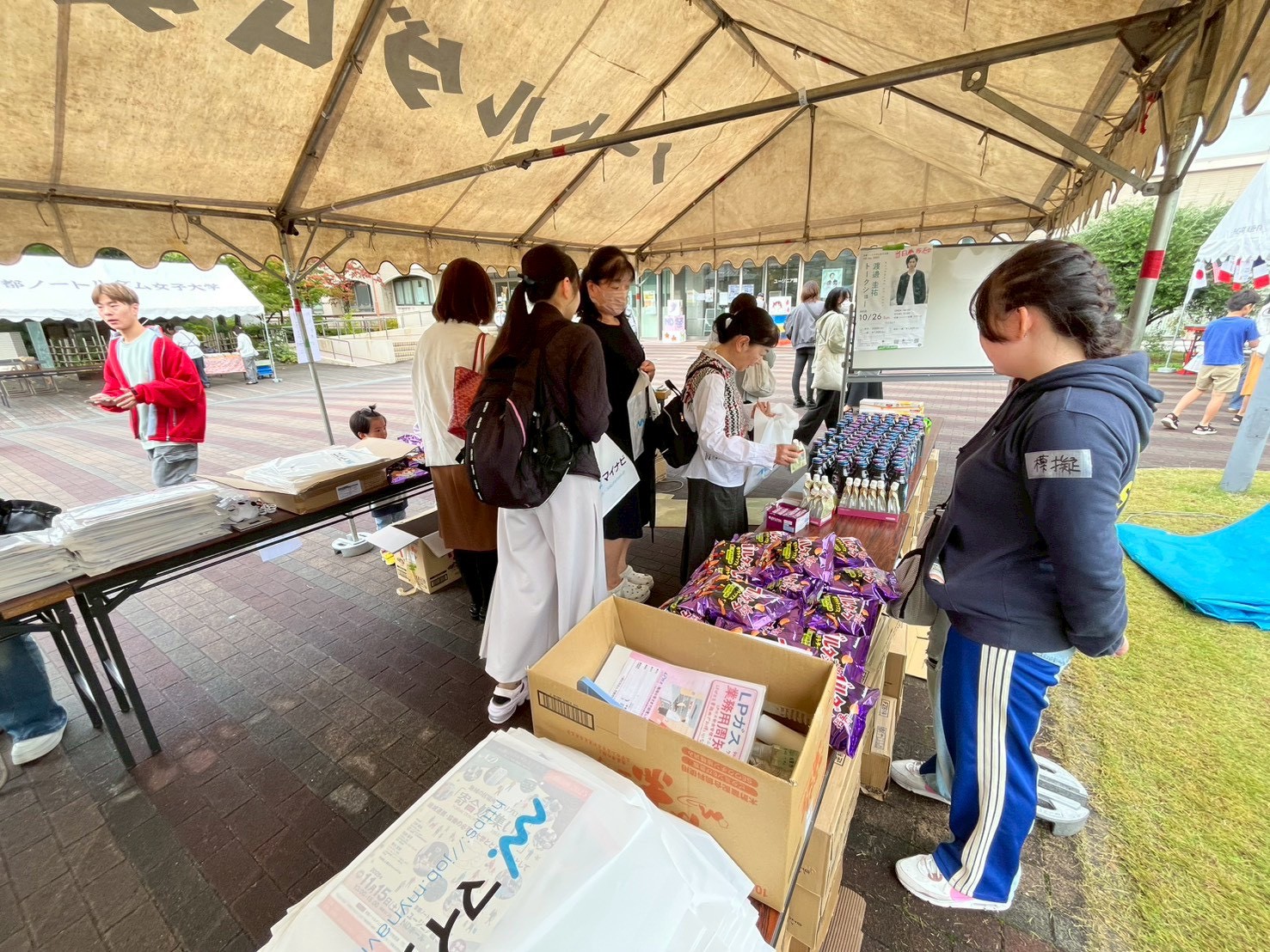 - 商品配布状況:本部にて来場者を対象に配布を行い、開場と同時に配布も開始しましたが、あっという間に当日分の予定数量に達するという、想定を大きく上回るスピードで配布が進みました。混雑はあったものの大きな滞留は発生せず、導線を確保しながらスムーズに配布を完了することができました。女子大学の学園祭に置くことで、美意識の高い方や、腸活をされているかたなどからも人気があったのではないかと思っています。全体として、想定以上の受取率と効率的な運営が達成できたと感じています。