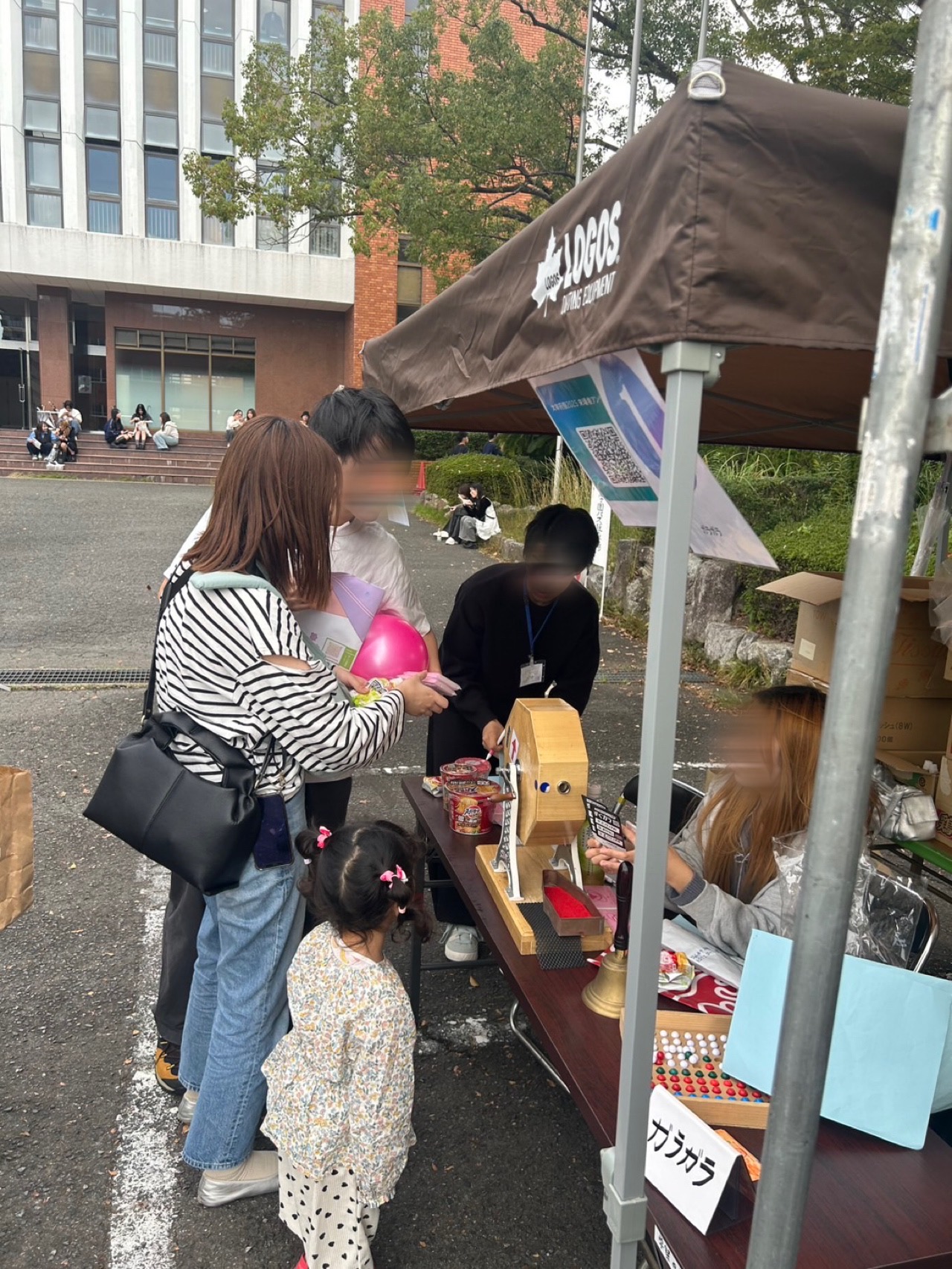 - 大学祭コメント:あいにく天候には恵まれませんでしたが、多くの皆様にご来場いただき、おかげさまで大学祭は大いに盛況となりました。 また、向かい側の建物で同時開催されているイベントの参加者の方々にも足をお運びいただき、会場全体が活気に満ちたものとなりました。 さらに、実行委員会で企画いたしました全体企画におきましては、提供いただきましたクラッシュタイプの蒟蒻畑(シャインマスカット味)を景品として配布いたしましたところ、大変ご好評をいただきました。