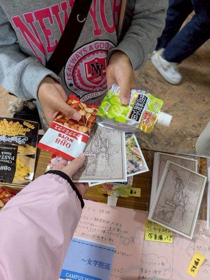 - 商品配布状況:提供いただいた商品は、企画部が運営する各種企画において幅広く活用させていただきました。具体的には、来場者参加型の「女学院巡り」や、毎年大きな盛り上がりを見せるビンゴ大会、そして模擬店グランプリの優勝者への景品として使用いたしました。 いずれの場面でも、スタッフがすべて手渡しで商品をお渡しし、受け取られた方々からは喜びの声や笑顔が多く見られました。これらの商品は企画の満足度向上に大きく寄与し、多くの来場者にとって思い出に残る体験となりました。