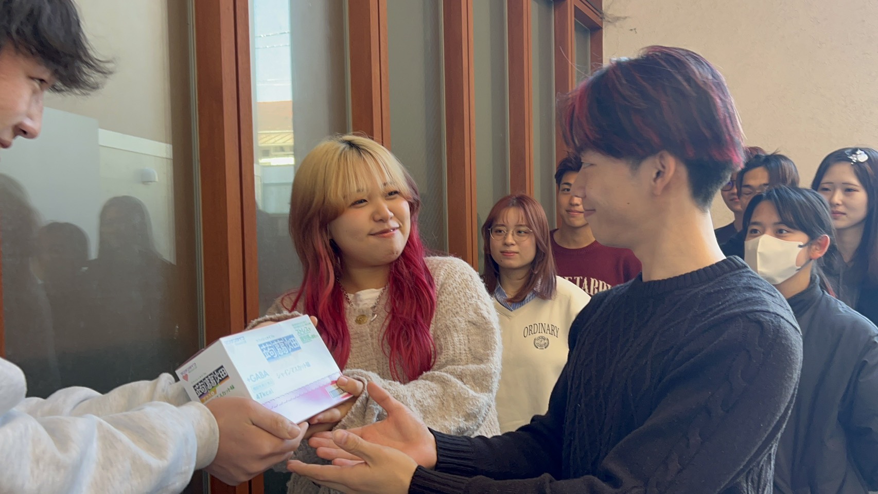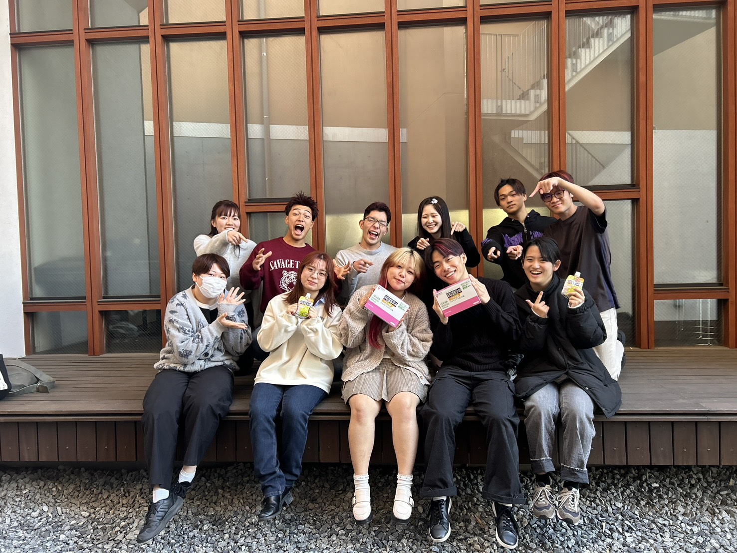 - 商品配布状況:協賛品は、ガラポンの景品ならびにDAY3の応援団演武における「応援賞」として活用させていただきました。 各団がこの日のために練習を重ね、全力を尽くした演武を披露いたしましたが、厳正な審査の結果、赤団全員へ貴社製品を贈呈いたしました。 大会を終えた後に手にした賞品は、学生たちにとって努力が報われた何よりの証となり、満面の笑みで喜びを分かち合っておりました。ガラポンでは、豊富な種類からどの味にするか迷っている人が多くいました。