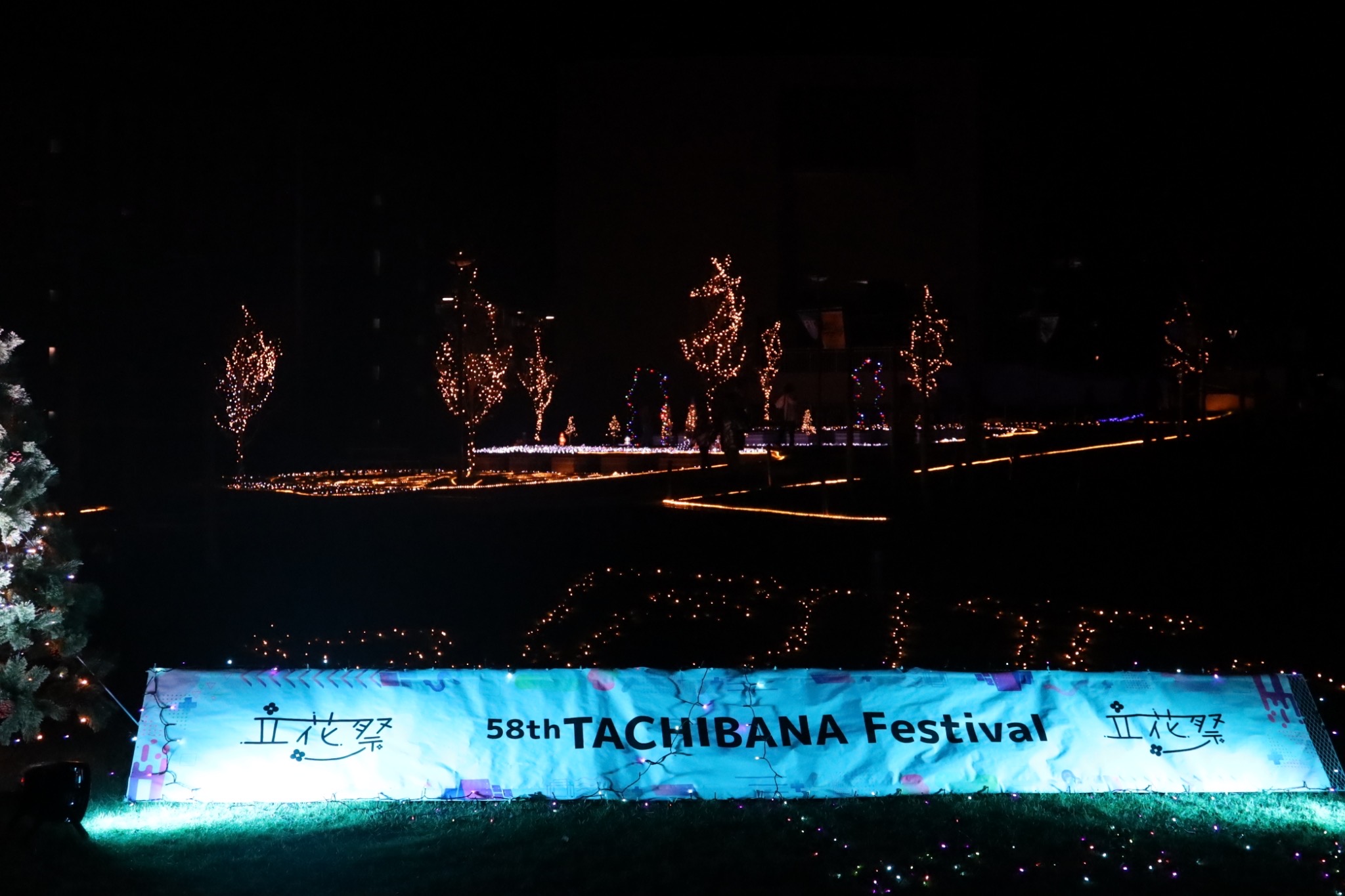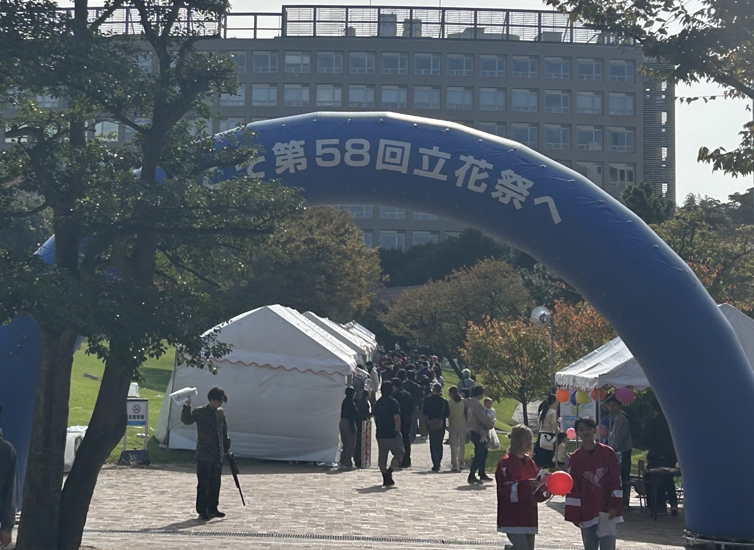 - 大学祭コメント:本年度で第58回を迎えた立花祭は、約6,300名の来場者をお迎えし、大盛況のうちに無事終了いたしました。学生主体で企画・運営を行い、屋台、展示、ステージ企画、脱出ゲームなど多彩なプログラムを実施しました。さらに今年は、最終日にアーティストライブと、光のオブジェ、イルミネーション、プロジェクションマッピングによる光のショーを行い、来場者の方に楽しい時間と幻想的な雰囲気を提供しました。当日は天候にも恵まれ、学内外から幅広い年代の方々にご来場いただき、キャンパス全体が活気に満ちあふれました。 今年度のテーマ「彩~それぞれの色が今ここで重なり合う」に沿って、学生一人ひとりの個性が企画や運営に活かされ、模擬店やステージ、光のショーなど多様なプログラムが調和して学園祭全体の魅力を作り上げました。このように、多彩な活動がひとつに重なり合うことで、テーマに沿った立花祭を実現することができました。