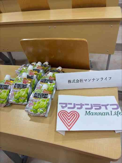 - 商品に対するコメント:提供いただいた、「蒟蒻畑シャインマスカット味」は、食べやすくおいしいと評判で、小さなお子様から高齢の方まで安心して召し上がっていただける点が好評でした。「こ んにゃくの独特の食感と果物の美味しさが味わえるのがおいしい」という声もあり、来場いただいた外国の方々からも人気がありました。藤花祭の「SNS企画」の景品としても使用させていただき、多くの方がブースを巡るきっかけとなりました。見た目もカラフルで、藤花祭の雰囲気をより明るくしてくれる存在でした。
