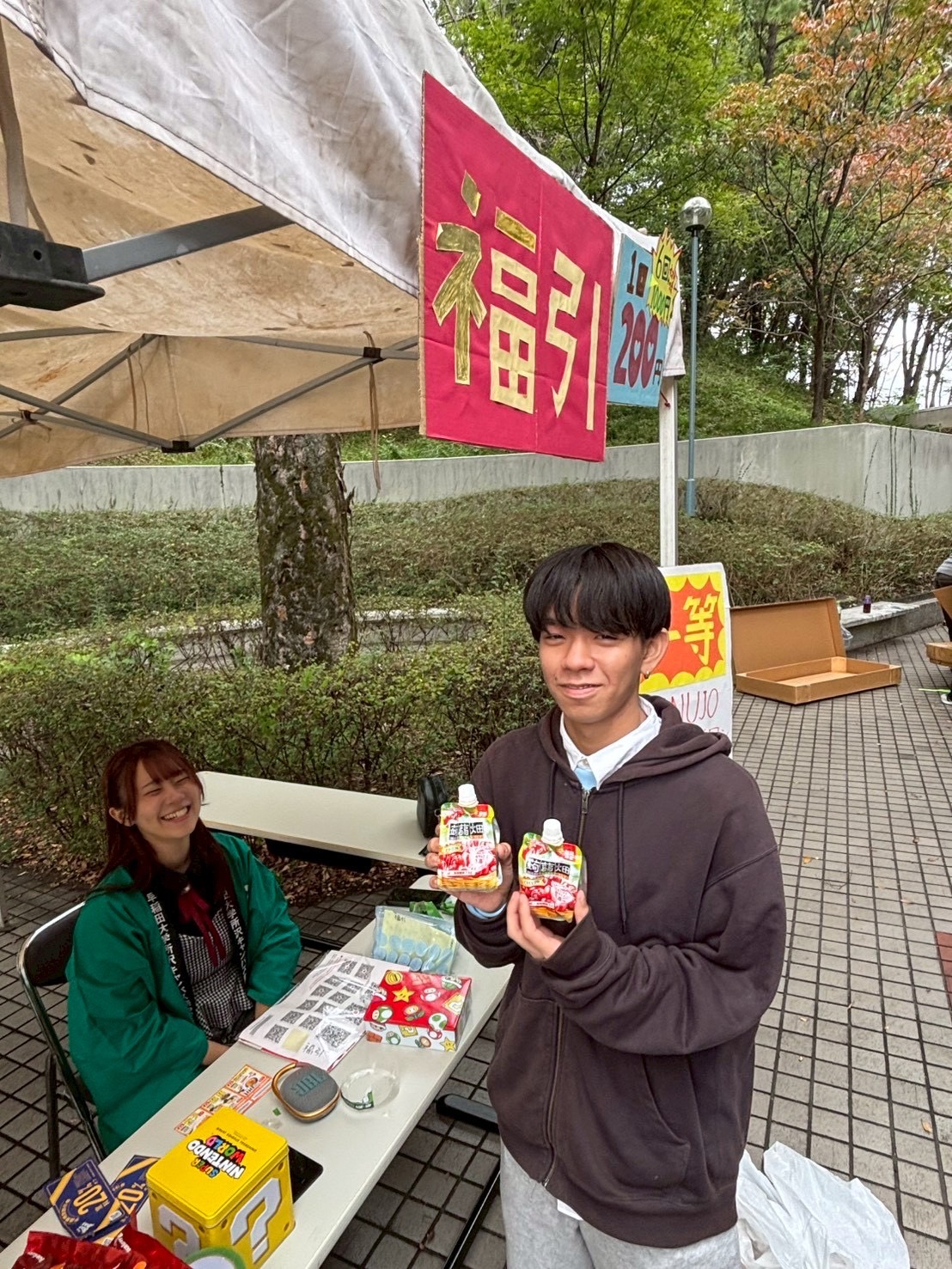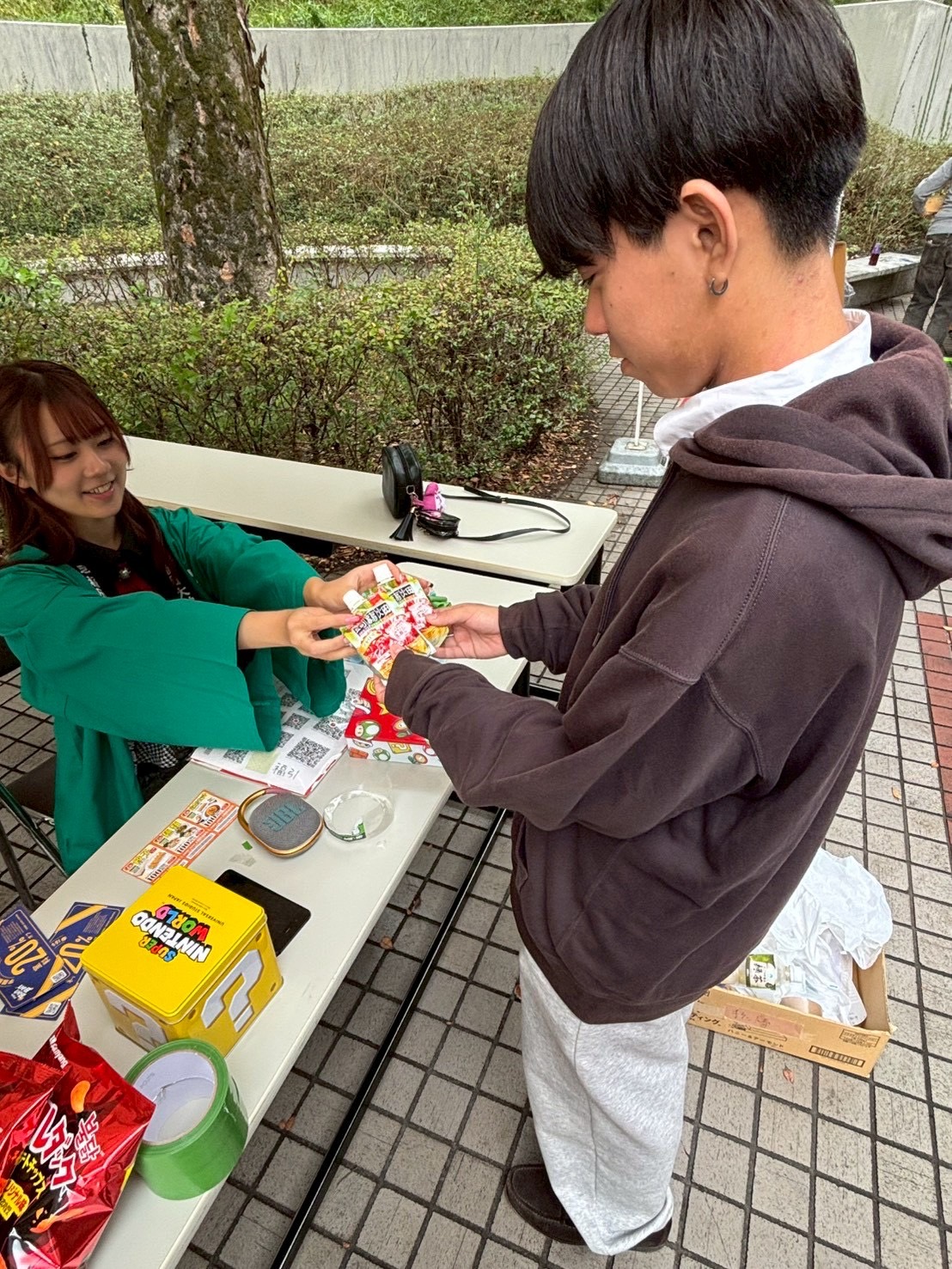 - 商品配布状況:いただいた協賛品は、ゲーム大会の参加賞や子供企画の景品として配布させていただきました。手渡した瞬間にその場で口に運ばれる方が非常に多く、「美味しい」という喜びの声が直接私たちのもとにも数多く届きました。また、配布後にわずかに残った分につきましては、実行委員内で「争奪じゃんけん大会」を行い、配布させていただきました。学生たちの間でも非常に人気が高く、商品を巡って真剣勝負が繰り広げられるほどでした。
