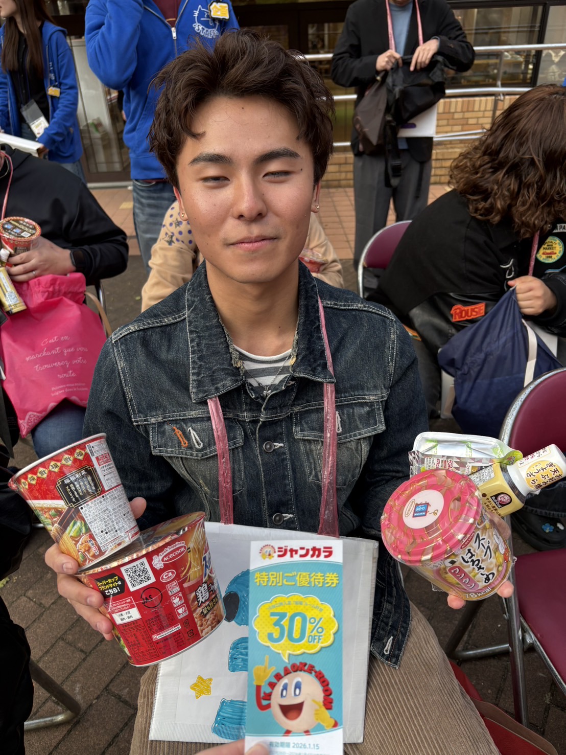 - 商品に対するコメント:提供いただいたクラッシュタイプの蒟蒻畑(マスカット味・アセロラ味)は、手軽に楽しめる点やさわやかな味わいが大変好評でした。特に期間限定のアセロラ味は珍しさ もあり、多くの参加者が興味を持って受け取っていました。実行委員の学生からも「休憩時にぴったりで元気が出る」との声があり、味や食感の楽しさだけでなく、学祭の雰囲気作りにも一役買いました。参加者の笑顔と満足度向上に貢献する商品であり、改めてご提供に感謝申し上げます。