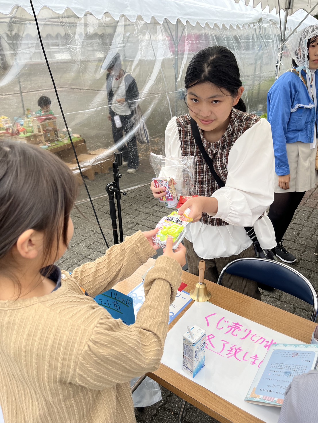 - 商品に対するコメント:スタンプラリーの景品として配布した蒟蒻畑などの品は、多くの来場者に好評をいただきました。雨の中での開催にもかかわらず、手軽に楽しめるスイーツとして喜ばれ、疲 れた体をリフレッシュさせる小さなご褒美となりました。特に蒟蒻畑は食べやすく、持ち歩きにも便利だったため、幅広い世代の参加者から「ちょうどいい」「うれしい」との声が寄せられました。学生の企画した景品選びが来場者の満足度を高め、駿輝祭の思い出をより一層印象深いものにしました。