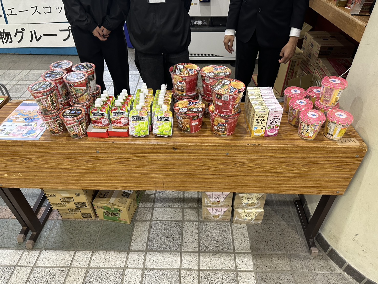 - 商品配布状況:駿輝祭のスタンプラリー景品としてご提供いただいた蒟蒻畑は、多くの来場者にご好評をいただき、2日間で用意した数量のうち半分以上を配布する結果となりました。今回ご提供いただいたアセロラ味とシャインマスカット味のうち、特にシャインマスカット味が人気で、初日から多くの参加者が手に取る姿が見られました。雨天の中でも来場者の反応は非常に良く、受け取った方々からは「おいしい」「うれしい」といった声が多く寄せられました。学園祭の雰囲気を和ませる一因となり、参加者の満足度向上に大きく貢献しました。