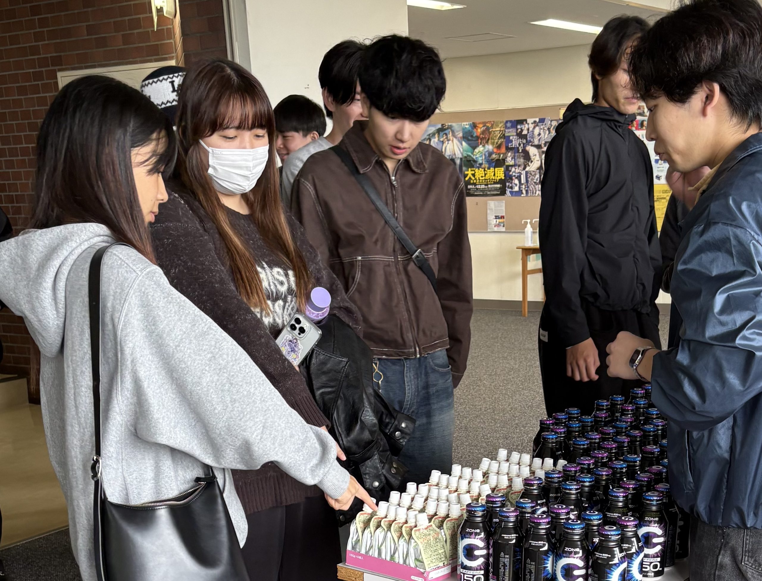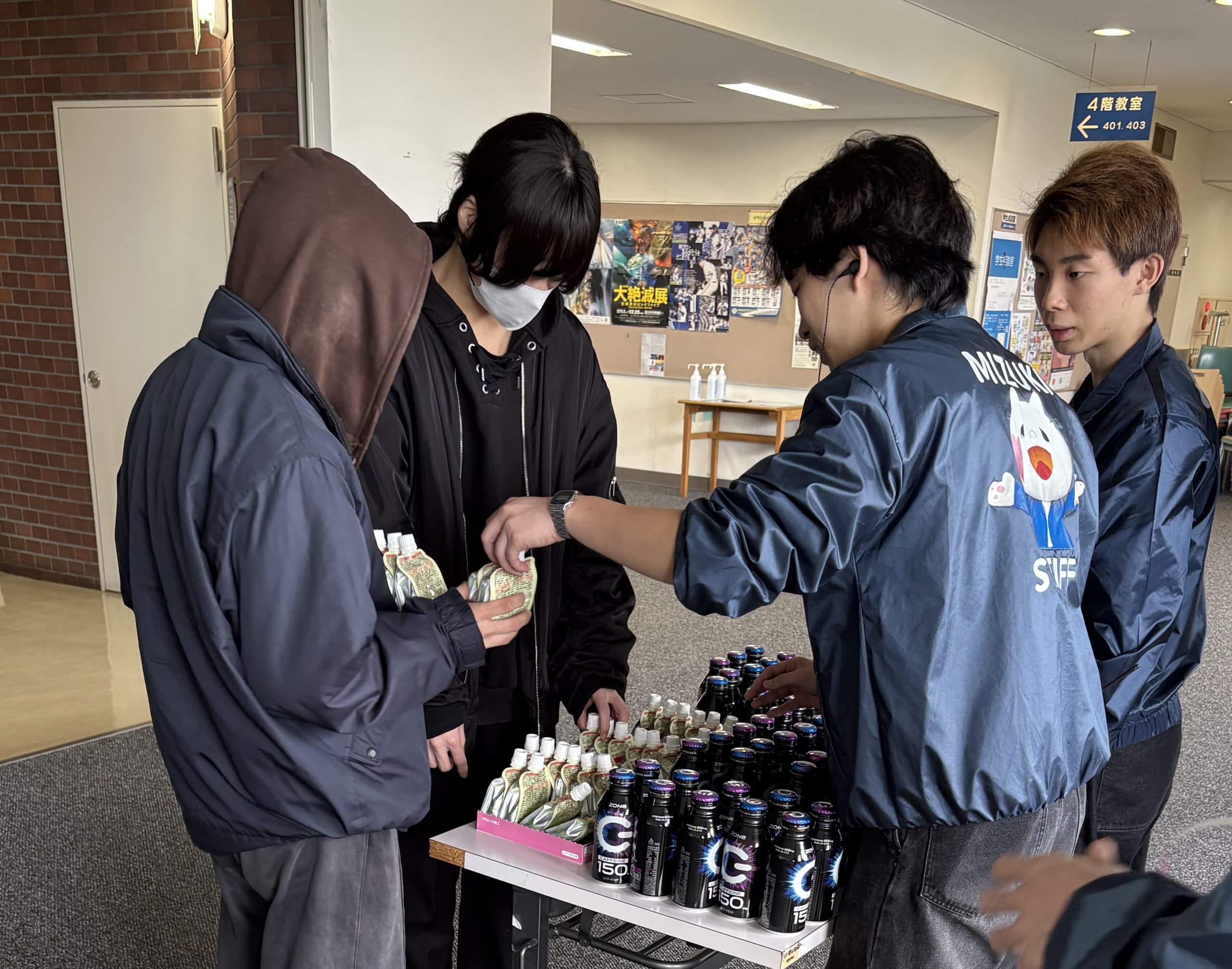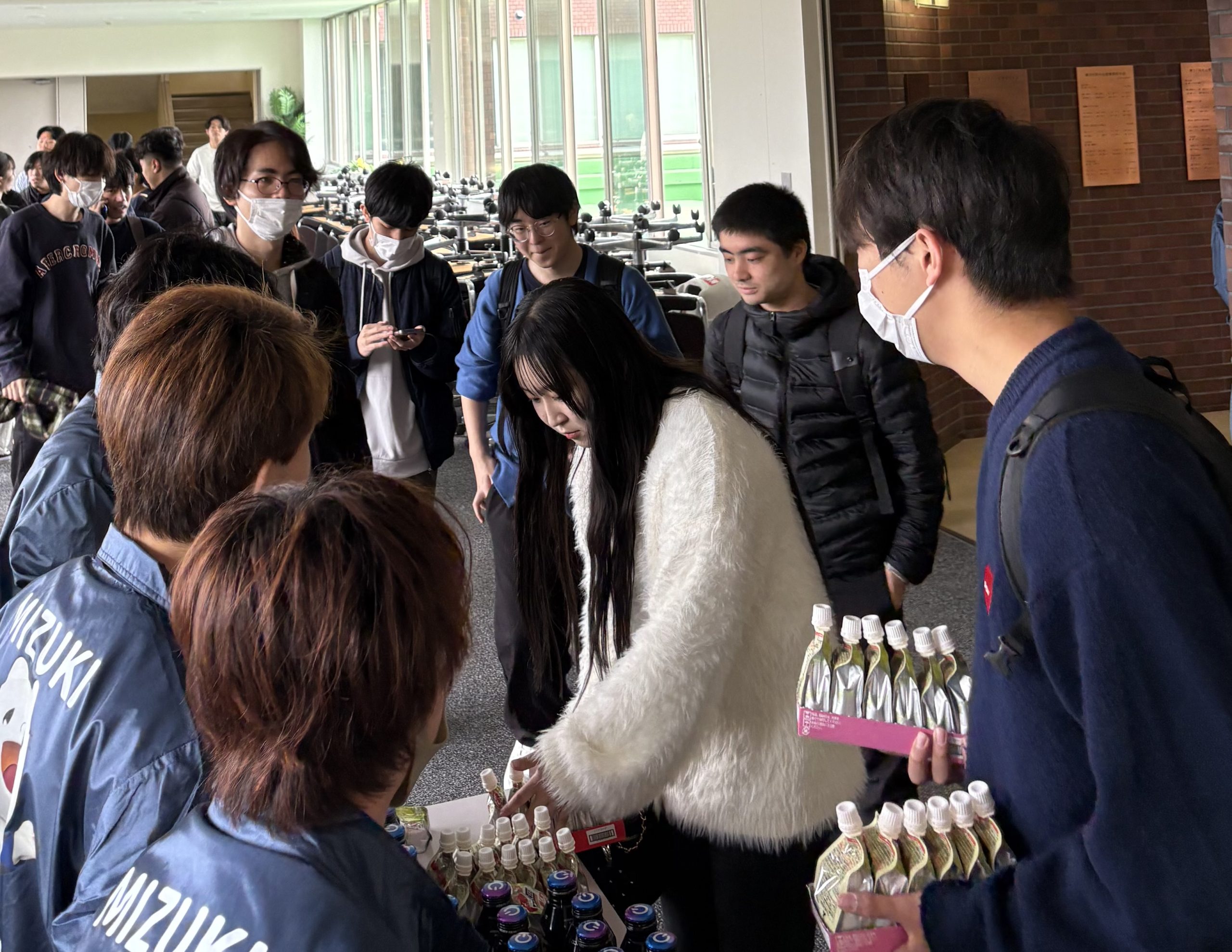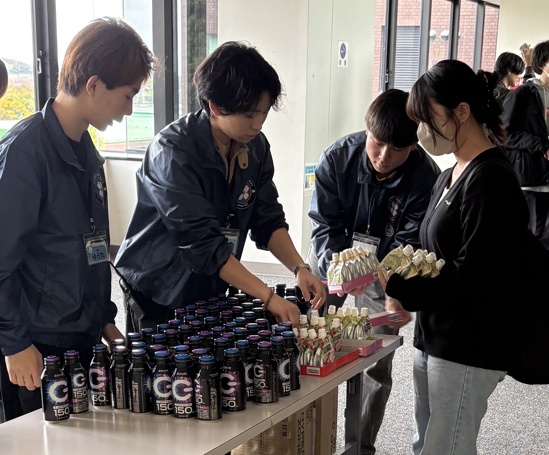 - 商品配布状況:提供いただいたクラッシュタイプの蒟蒻畑(アセロラ味・シャインマスカット味)は、11月8日・9日の瑞木祭当日に配布いたしました。配布対象は来場者および出店団体の学生で、受付にて一人ずつ手渡しでお渡しいたしました。合計約120個を配布し、両日とも全て配布を完了いたしました。アセロラ味は「さわやかな甘酸っぱさで美味しい」と来場者に好評で、特に家族連れの方々から喜ばれました。シャインマスカット味は出店団体の学生から「すっきりとした甘さで疲れが取れる」との声を多くいただき、活動中のリフレッシュに最適でした。多くの方に喜ばれる配布となりました。