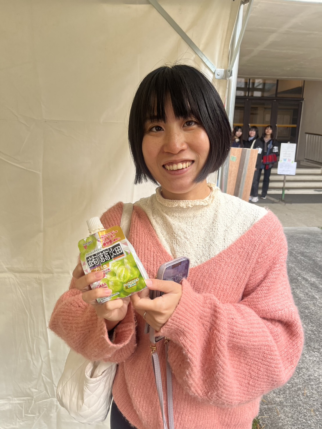 - 商品に対するコメント:提供いただいたクラッシュタイプの蒟蒻畑(アセロラ味・シャインマスカット味)は、瑞木祭当日に出店団体、来場者の方に配布させていただきました。 開封しやすく手軽に食べられる点が好評で、特にイベント中の休憩時に多くの方が召し上がっていました。どちらの味も人気がありましたが、出店団体の学生からはシャインマスカット味が特に好評でした。 「すっきりしていて疲れが取れる感じがする」との声もあり、長時間の活動中の疲労回復にぴったりとの感想をいただきました。 一方で、アセロラ味は家族連れの来場者から人気が高く、さわやかで飲みやすい味わいが小さなお子様にも好評でした。