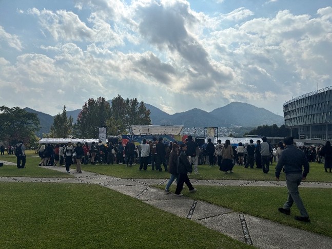 - 大学祭コメント:当日は秋晴れの心地よい天候に恵まれ、延べ1,300名を超える方々にご来場いただきました。 小さなお子様からご年配の方まで、幅広い年代の皆さまにお楽しみいただき、学生たちの熱意と笑顔があふれる、にぎやかで活気に満ちた大学祭となりました。 地域の皆さまと学生が交流する貴重な機会となり、心温まるひとときを共有できたことを、実行委員一同、心より嬉しく思っております。