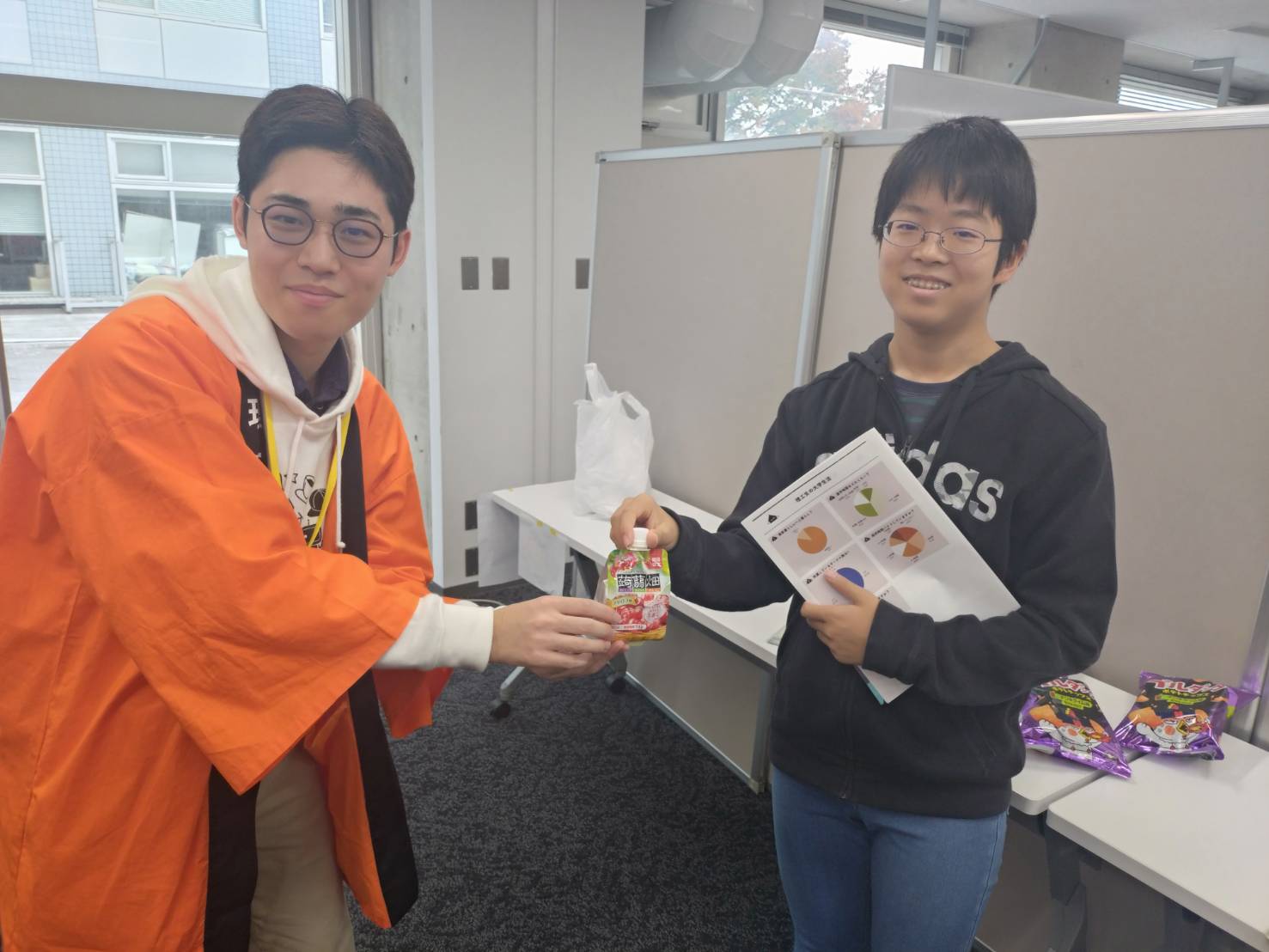- 商品配布状況:配布に関しましては全ての商品を来場したお客様や本学の学生に配布することができました。本学ではサンプリング配布所を2箇所設け、多くの客様に立ち寄っていただけるような工夫をしました。 配布時にはお客様や学生の笑顔をたくさん見ることができて大学祭を開催できたこと、協賛をいただけたこととても嬉しく思いました。 配布所には、配布開始時間前から行列ができるほどで大人気のブースとなっていました。武蔵祭でのサンプリング配布は今年度が初の試みでしたが、大成功で終了することができました。