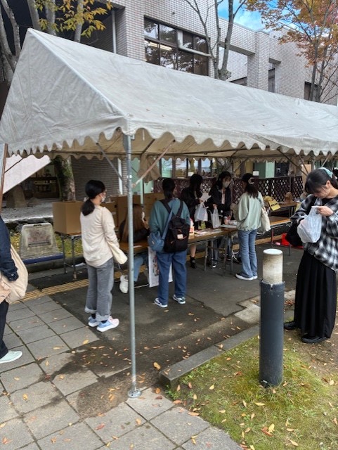 - 商品配布状況:協賛いただきました「蒟蒻畑」120袋は、奈良女子大学学園祭企画のひとつである「チャリティーくじ」にて配布させていただきました。この企画の収益⾦は、全額「社会福祉法⼈奈良県共同募⾦会」に寄付されます。くじ引きを楽しんでもらいながらチャリティー活動に参加してもらうことで、チャリ ティー活動を⾝近に感じてもらうことを目的としています。本年度対面で開催されましたチャリティーくじには700人をこえる来場者が訪れ、先着販売方式でのくじが連日即完売しました。