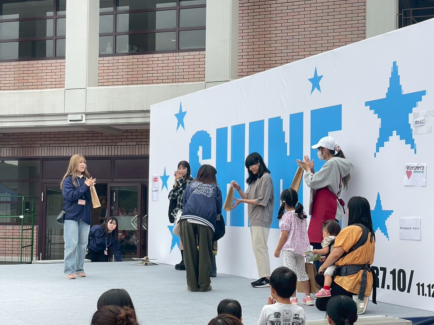 - 商品に対するコメント:協賛していただいた「クラッシュタイプの蒟蒻畑」は有名な商品であり、商品について知っている方々が多くいらっしゃいました。簡単に小腹が空いた時に食べることができ 、蓋が付いているため食べたい時に片手でも手を汚さずに食べることができる点が魅力的な商品でした。じゃんけん大会で景品として渡した際に、「こんにゃくゼリー大好き」といった声が多かったのを鮮明に覚えています。数量も30個入りが4ケースと多くいただいたのでより多くの来場者の方々に配布することができました。