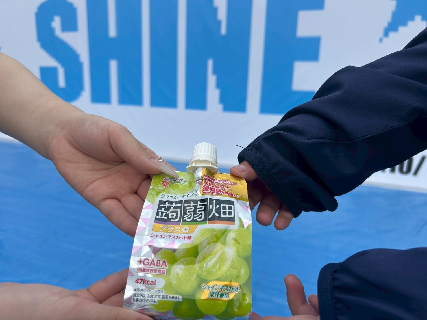 - 商品に対するコメント:ご協賛いただいた「クラッシュタイプの蒟蒻畑」は、知名度・人気ともに高く、ビンゴ大会の景品として大変好評を博しました。景品紹介の際には「そんなにもらえるのか」 と驚きの声が上がり、参加者の注目を集めました。フルーツの風味と食感の良さ、手軽に楽しめるパウチタイプという点が評価され、若年層を中心に高い満足度を得ました。 提供いただいた商品は、イベントの魅力向上に大いに寄与し、参加者の笑顔を生む一因となりました。