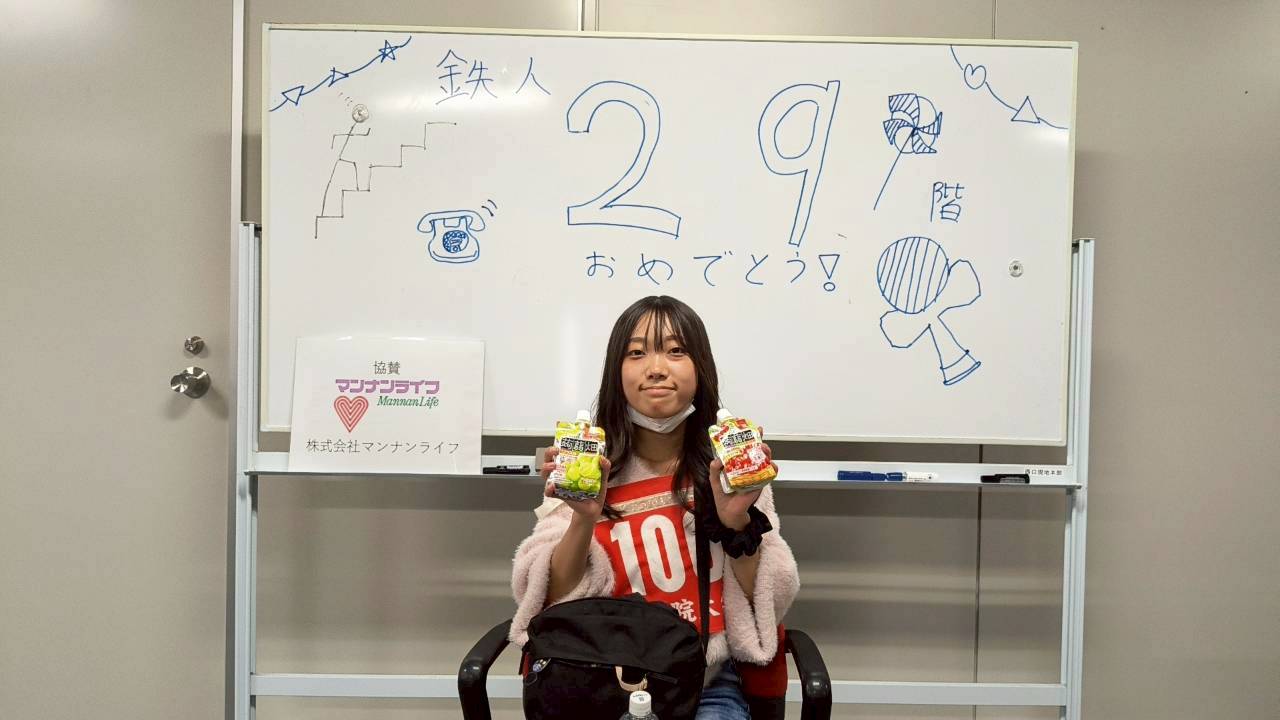 - 商品に対するコメント:当学園祭では、各企画における来場者の方への景品として「蒟蒻畑 マスカット味」および「蒟蒻畑 アセロラ味」を配布致しました。これらの協賛品を受け取られた来場者の方からは、「懐かしい味!学園祭でこれ貰えるとは思わなかった!」「これ、ヘルシーでおいしいから好きなんだよねー」「アセロラ味なんてあるの?知らなかった!」といった声があり、どの方も大変喜ばれた様子で、快く写真撮影に応じてくださる方もいらっしゃいました。